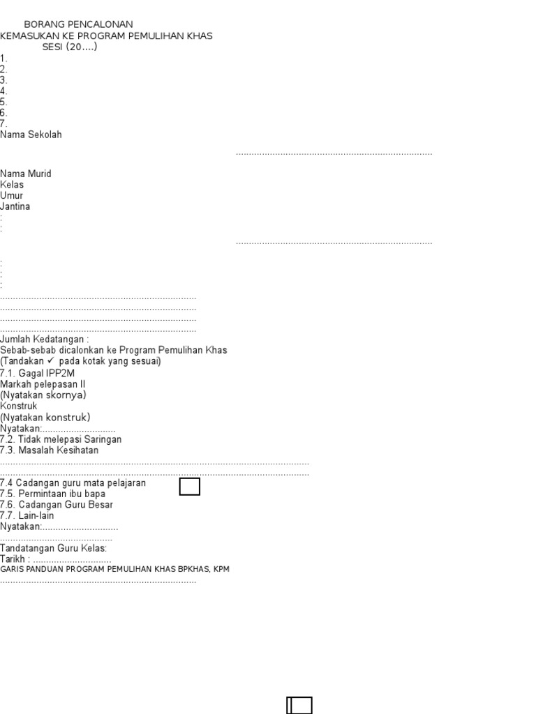 Borang Pencalonan Murid Ke Kelas Pemulihan Khas Docx