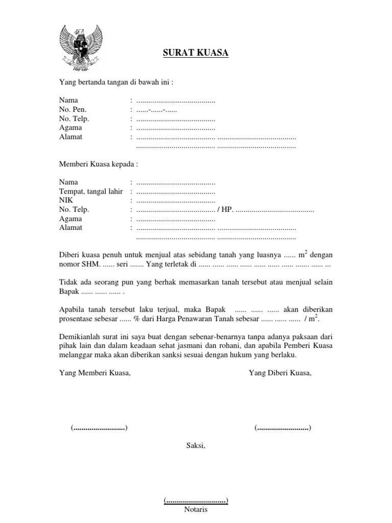 Contoh Surat Kuasa Tanah Pdf