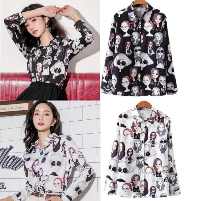 Kemeja Lengan Panjang Monalisa Terbaru Motif Kucing Atasan Wanita Kemeja Wanita Lazada Indonesia