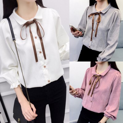 2018 Musim Gugur Putih Lengan Panjang Sifon Atas Kemeja Perempuan Wanita Baru Longgar Dan Serbaguna Shopee Indonesia