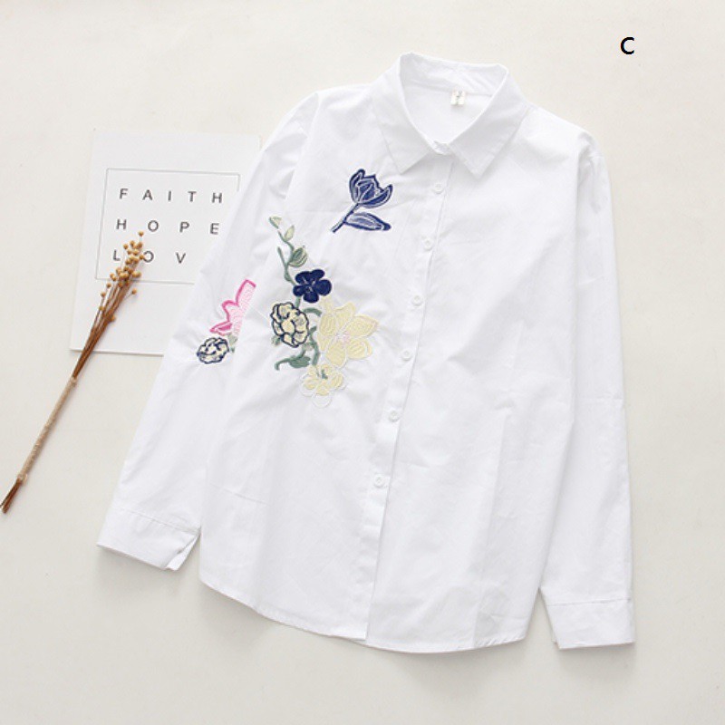 Best Kemeja Wanita Casual Lengan Panjang Model Turn Down Neck Versi Korea Warna Putih Shopee Indonesia