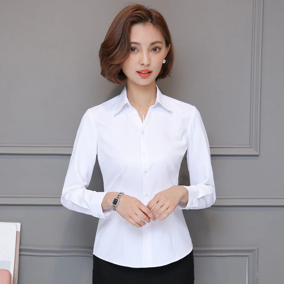 Kemeja Korea Lengan Panjang Wanita Kemeja Putih Adalah Pelangsing Bahagian Bawah Pakaian Perniagaan Pakaian Kerja Atasan Wanita Serasi Shopee Singapore
