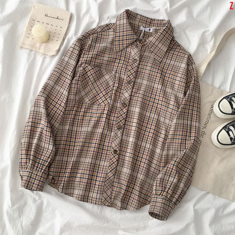 Kemeja Kotak Kotak Musim Semi 2020 Wanita Baru Korea Liar Kemeja Lengan Panjang Shopee Indonesia