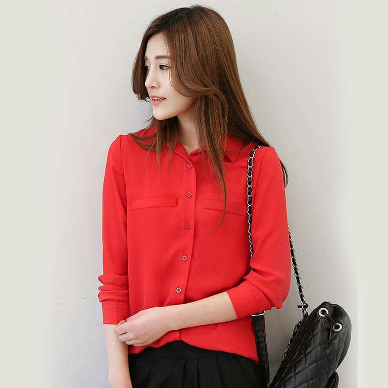 Baju Kemeja Wanita Lengan Panjang Polos Model Terbaru Ryn Fashion