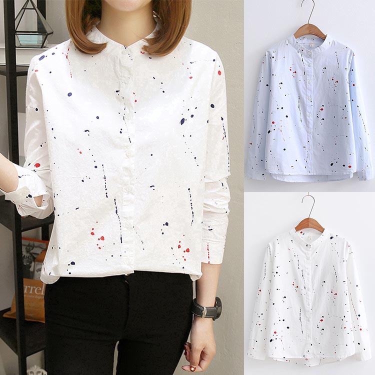 Aimeibeauty S Xl Kemeja Wanita Lengan Panjang Model Longgar Versi Korea Motif Print Shopee Indonesia