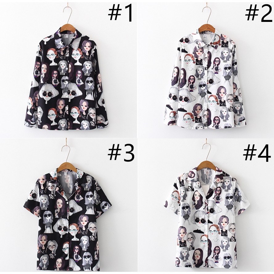 Kemeja Korea Lengan Panjang Motif Print Kartun Shopee Indonesia