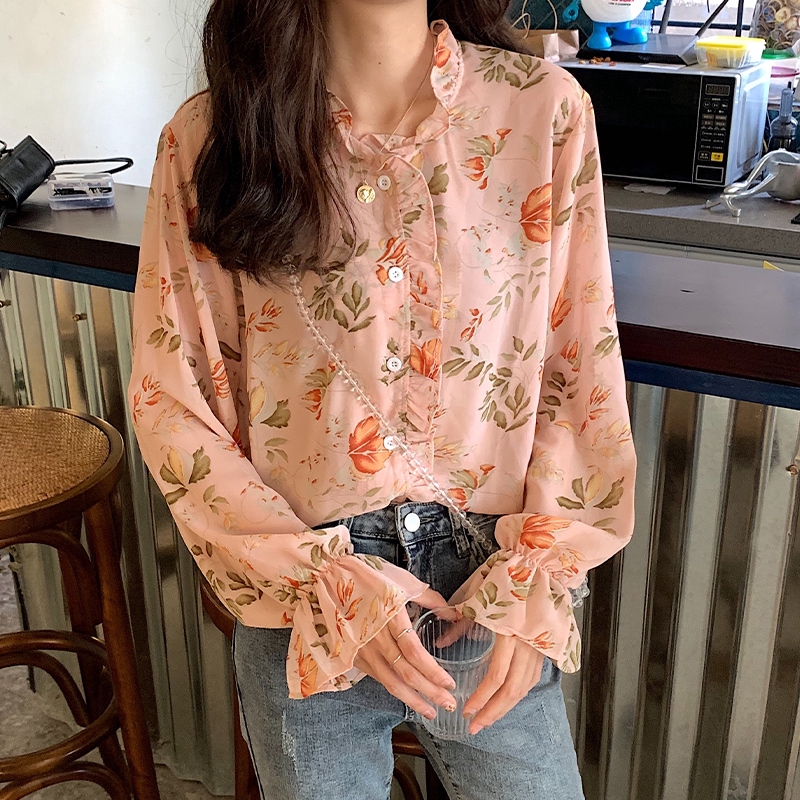 New Type Model Kemeja Sifon Korea Lengan Panjang Motif Print Bunga Ukuran Kecil Untuk Wanita Keren Gan Di Lapak York Bukalapak