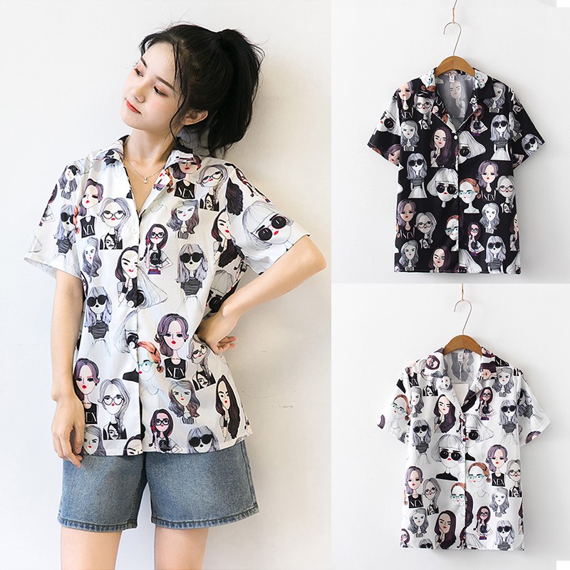 Kemeja Wanita Korea Motif Koran Longgar Lengan Panjang Motif Print Kemeja Murah Lazada Indonesia