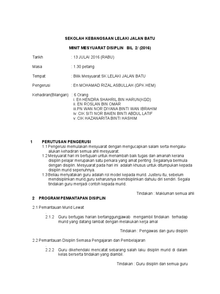 Minit Mesyuarat Jk Disiplin Bil 3 2019 Pages 1 4 Text Version Anyflip