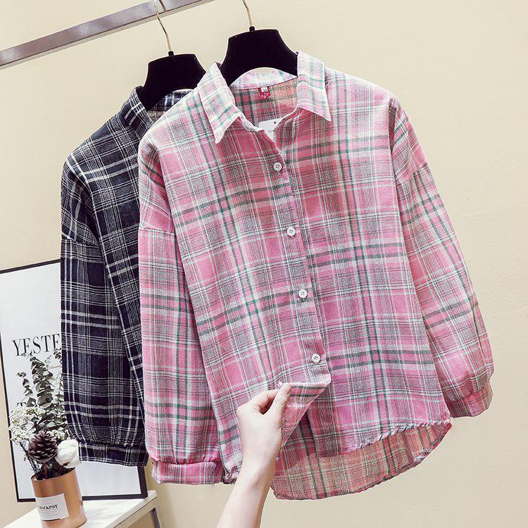 Kemeja Kotak Kotak Wanita Musim Panas Musim Semi Baru Lengan Panjang Engah Lengan Kardigan Longgar Shopee Indonesia