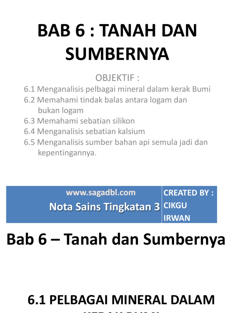 Sains Tingkatan 3 Bab 6 Tanah Dan Dunia Sains Saya Facebook
